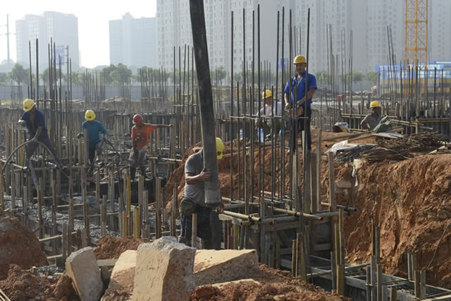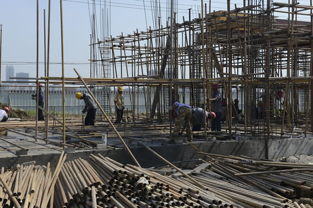 在松江花園項目現(xiàn)場,上百名施工人員在炎炎烈日下?lián)]灑著汗水,奮戰(zhàn)在工地。該項目主要服務(wù)于稻谷溪濕地公園雙征安置,總投資約4500萬元,目前1號至5號樓的主體工程建設(shè)已全面鋪開,預(yù)計今年底完成主體結(jié)構(gòu),2018年2月主體封頂。