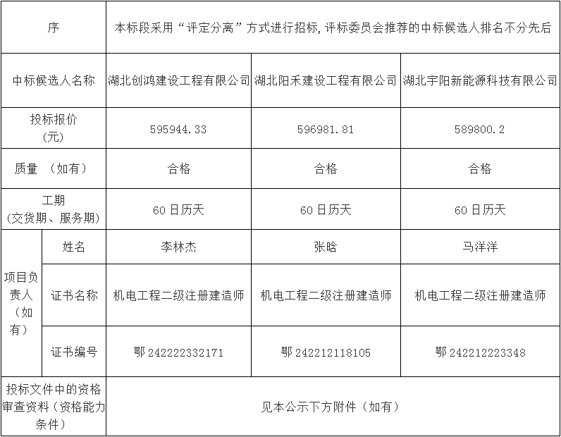 評標情況資料 見本公示下方附件