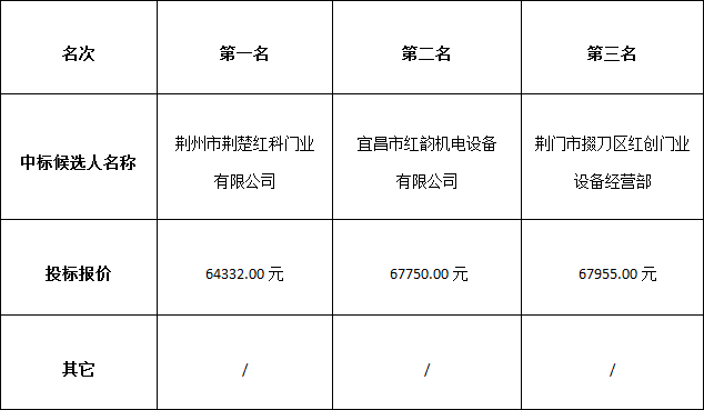 稻谷溪城市濕地公園配套設(shè)施設(shè)備(大門電動(dòng)伸縮門)采購(gòu)項(xiàng)目于2018年11月28日發(fā)布詢價(jià)邀請(qǐng)函,2018年12月5日在松滋市稻谷溪城市濕地公園會(huì)議室進(jìn)行評(píng)標(biāo)。根據(jù)評(píng)標(biāo)小組提交的評(píng)標(biāo)結(jié)論,湖北金投物業(yè)管理有限公司已經(jīng)確認(rèn)評(píng)標(biāo)結(jié)果,現(xiàn)進(jìn)行中標(biāo)候選人公示。