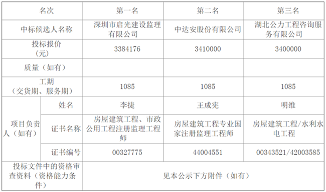 松滋市金投·新城壹品建設(shè)項目第三標(biāo)段監(jiān)理松滋市金投·新城壹品建設(shè)項目第三標(biāo)段監(jiān)理于2019年09月04日在湖北省電子招投標(biāo)交易平臺發(fā)布招標(biāo)公告,2019年09月27日在開標(biāo)室(1)開標(biāo),并于2019年09月27日完成評標(biāo)工作。根據(jù)評標(biāo)委員會提交的評標(biāo)報告,湖北松滋金投置業(yè)有限公司已經(jīng)確認(rèn)評標(biāo)結(jié)果,現(xiàn)進行評標(biāo)結(jié)果公示。