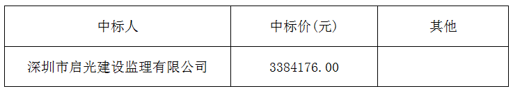 松滋市金投·新城壹品建設(shè)項(xiàng)目第三標(biāo)段監(jiān)理(項(xiàng)目名稱)松滋市金投·新城壹品建設(shè)項(xiàng)目第三標(biāo)段監(jiān)理(標(biāo)段名稱)于2019年10月01日在湖北省電子招標(biāo)投標(biāo)交易平臺(tái)(網(wǎng)址:www.hbbidcloud.cn)、湖北省公共資源交易電子服務(wù)系統(tǒng)(網(wǎng)址:www.hbggzyfwpt.cn)(媒介名稱)上發(fā)布了評標(biāo)結(jié)果公示,公示期為2019年10月01日至2019年10月08日。招標(biāo)人已經(jīng)依法確定中標(biāo)人并對本次招標(biāo)的中標(biāo)結(jié)果予以公告: